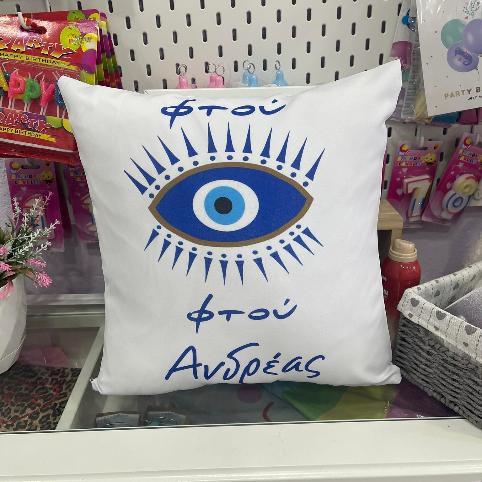 Μαξιλάρι Φτού -Φτού με εκτυπωμένο σχέδιο Evil Eye και όνομα