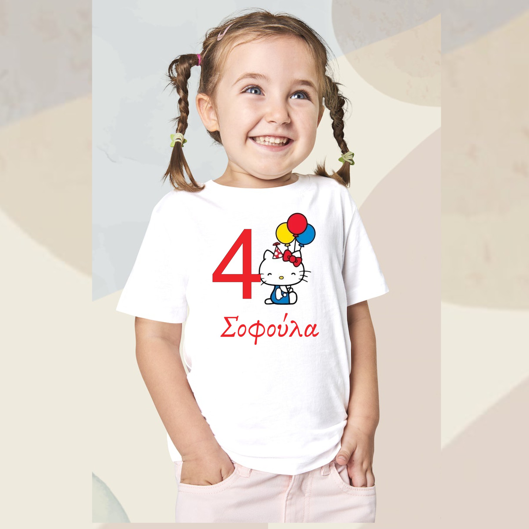 Μπλουζάκι με Εκτύπωση Hello kitty με όνομα και αριθμό