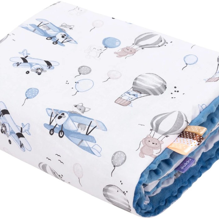 Βρεφική κουβέρτα διπλής όψης aeroplane με κέντημα ονόματος 75×100
