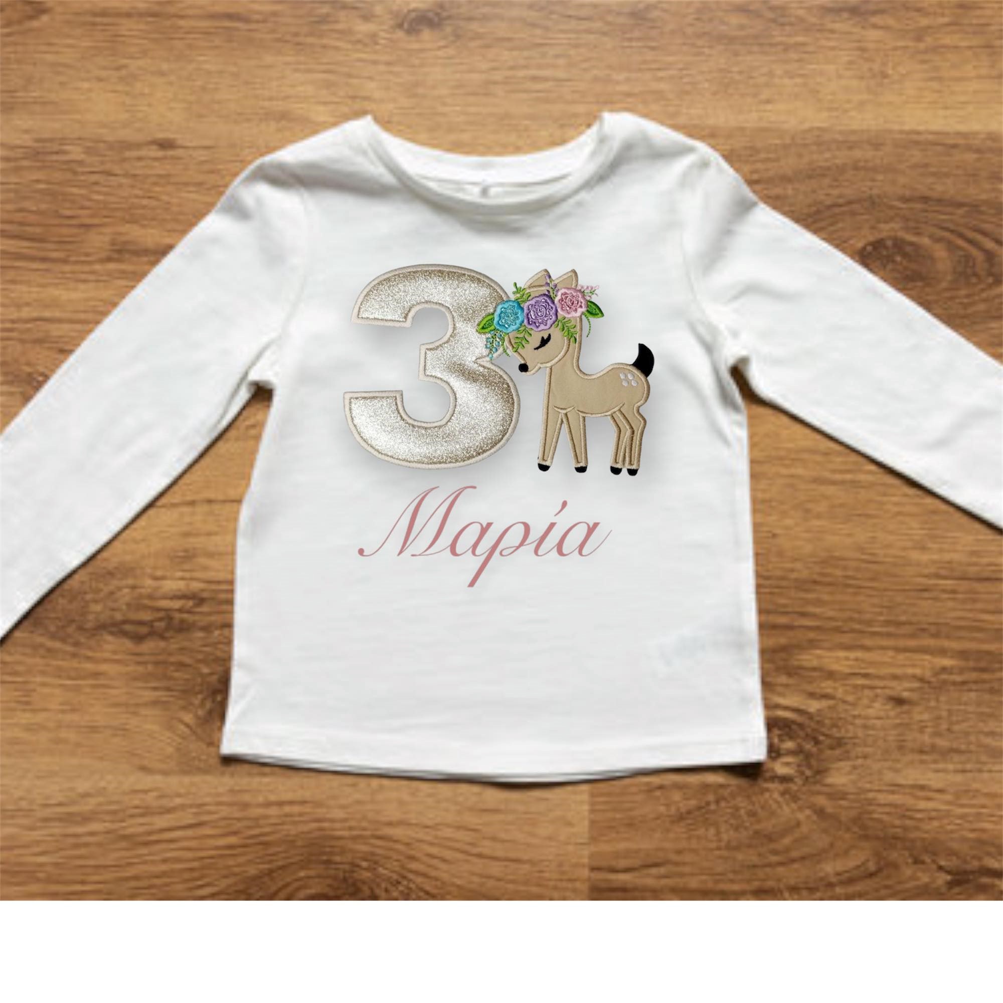 Μπλουζάκι γενεθλίων με κεντημένο σχέδιο ηλικία και όνομα