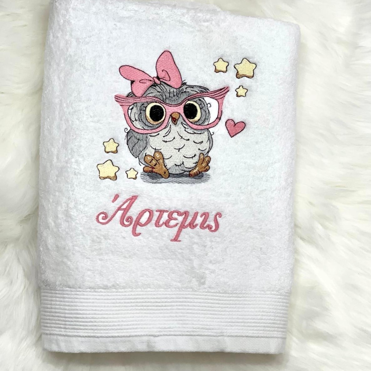 Πετσέτα μπάνιου με κεντημένο σχέδιο Κουκουβάγια & όνομα