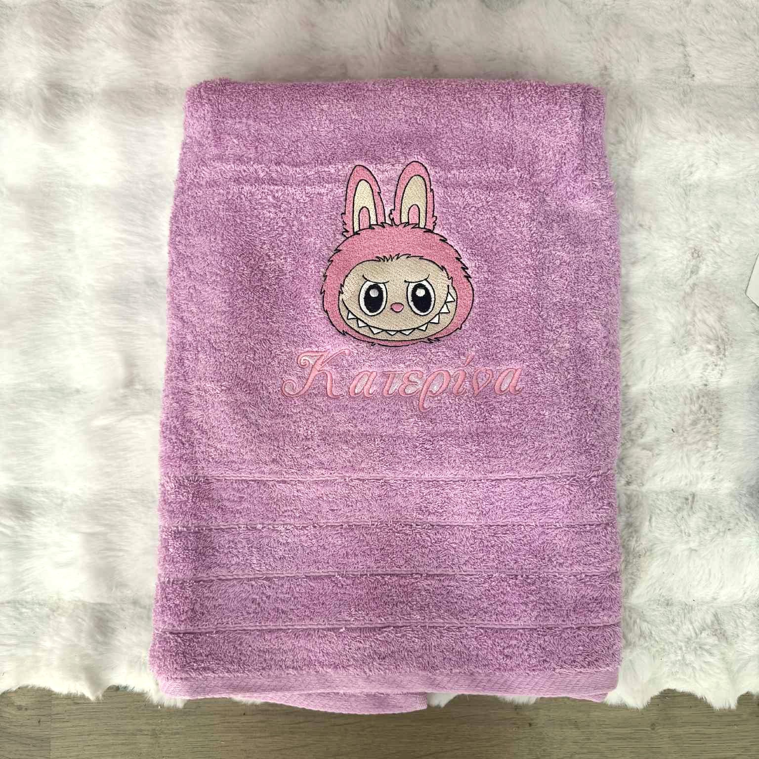 Πετσέτα μπάνιου με κεντημένο σχέδιο Labubu  & όνομα