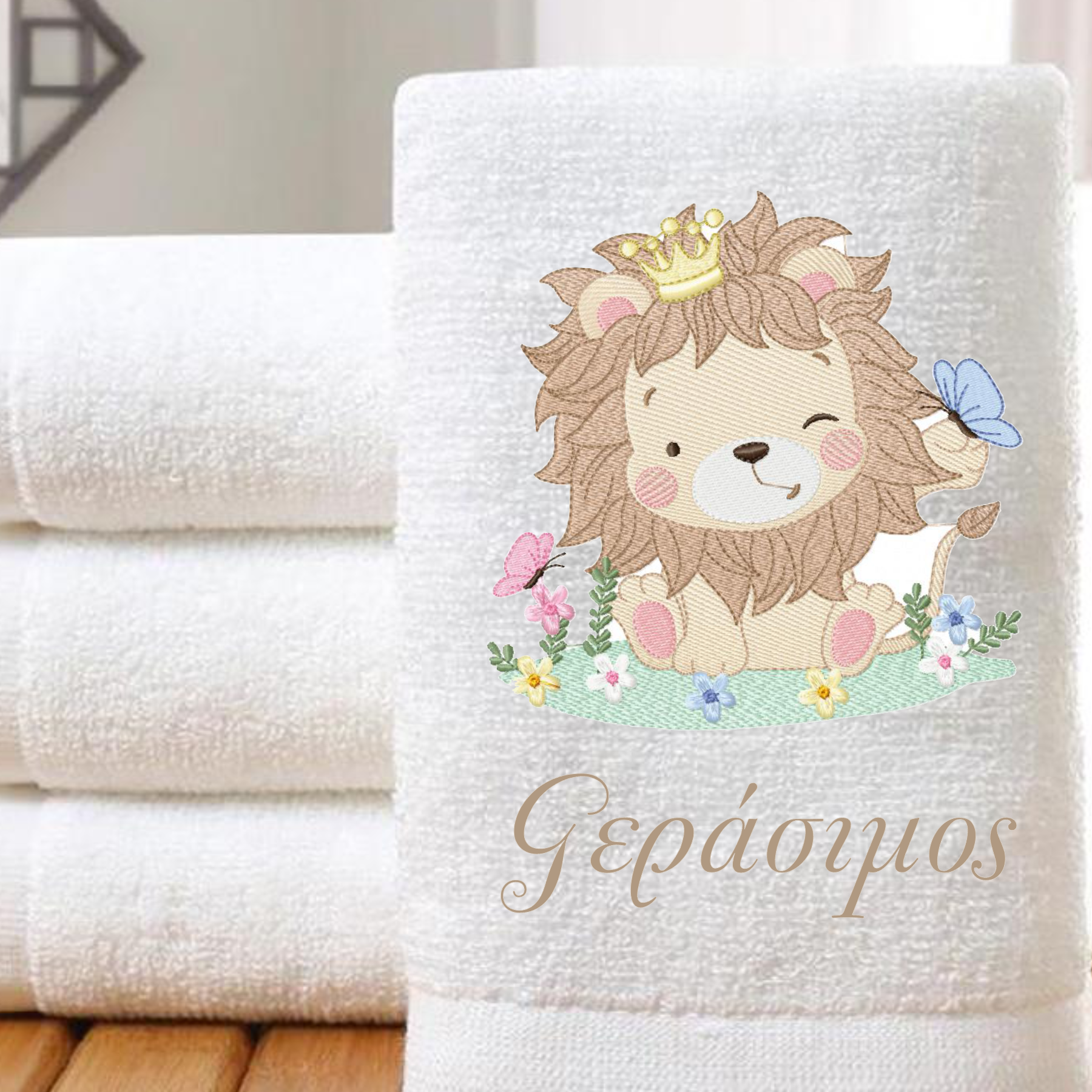 Πετσέτα μπάνιου με κεντημένο σχέδιο Λιονταράκι & όνομα