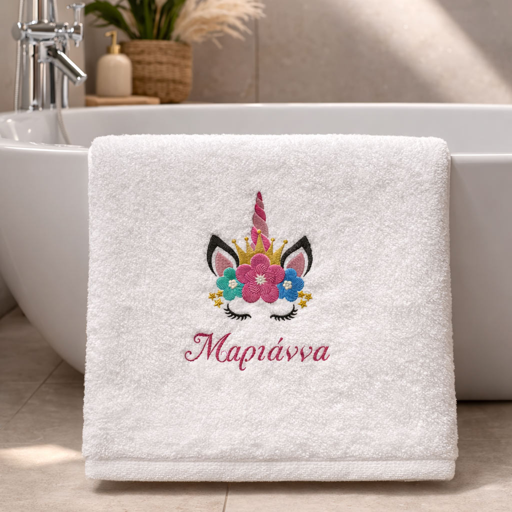 Πετσέτα Μπάνιου με κεντημένο σχέδιο Μονόκερος & όνομα
