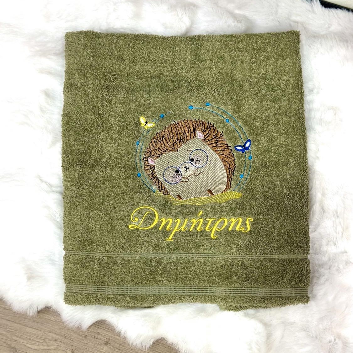 Πετσέτα μπάνιου με κεντημένο σχέδιο σκατζοχοιράκι  & όνομα