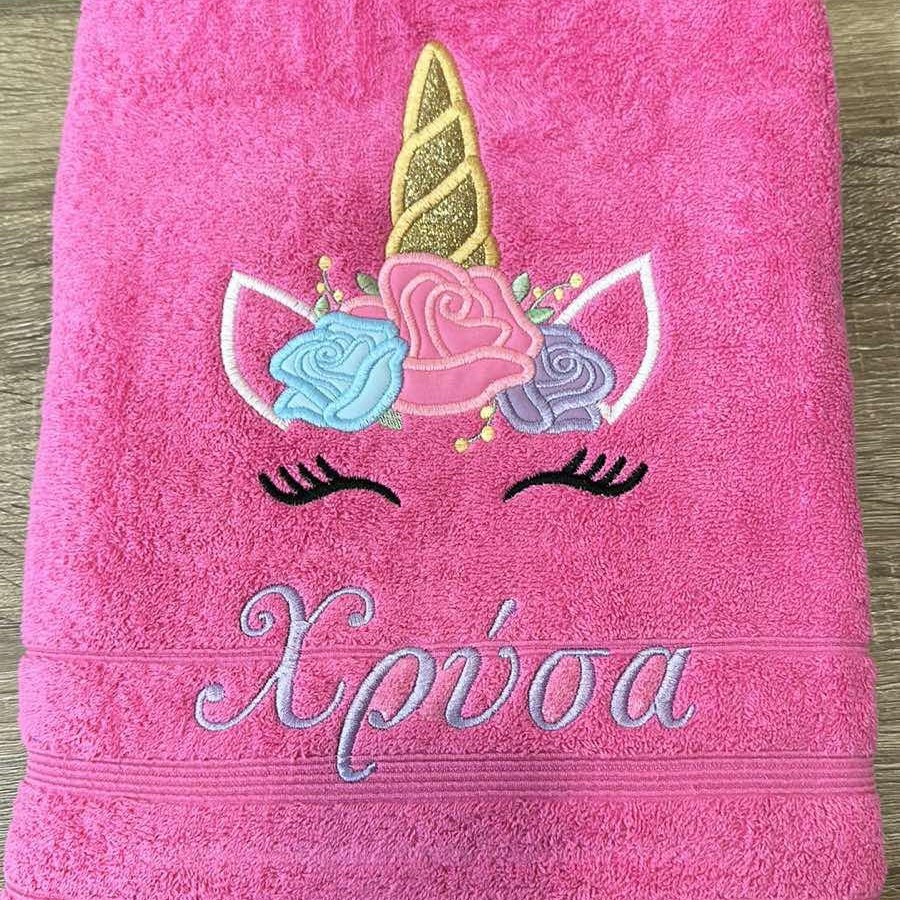 Πετσέτα μπάνιου με κεντημένο σχέδιο univorn & όνομα