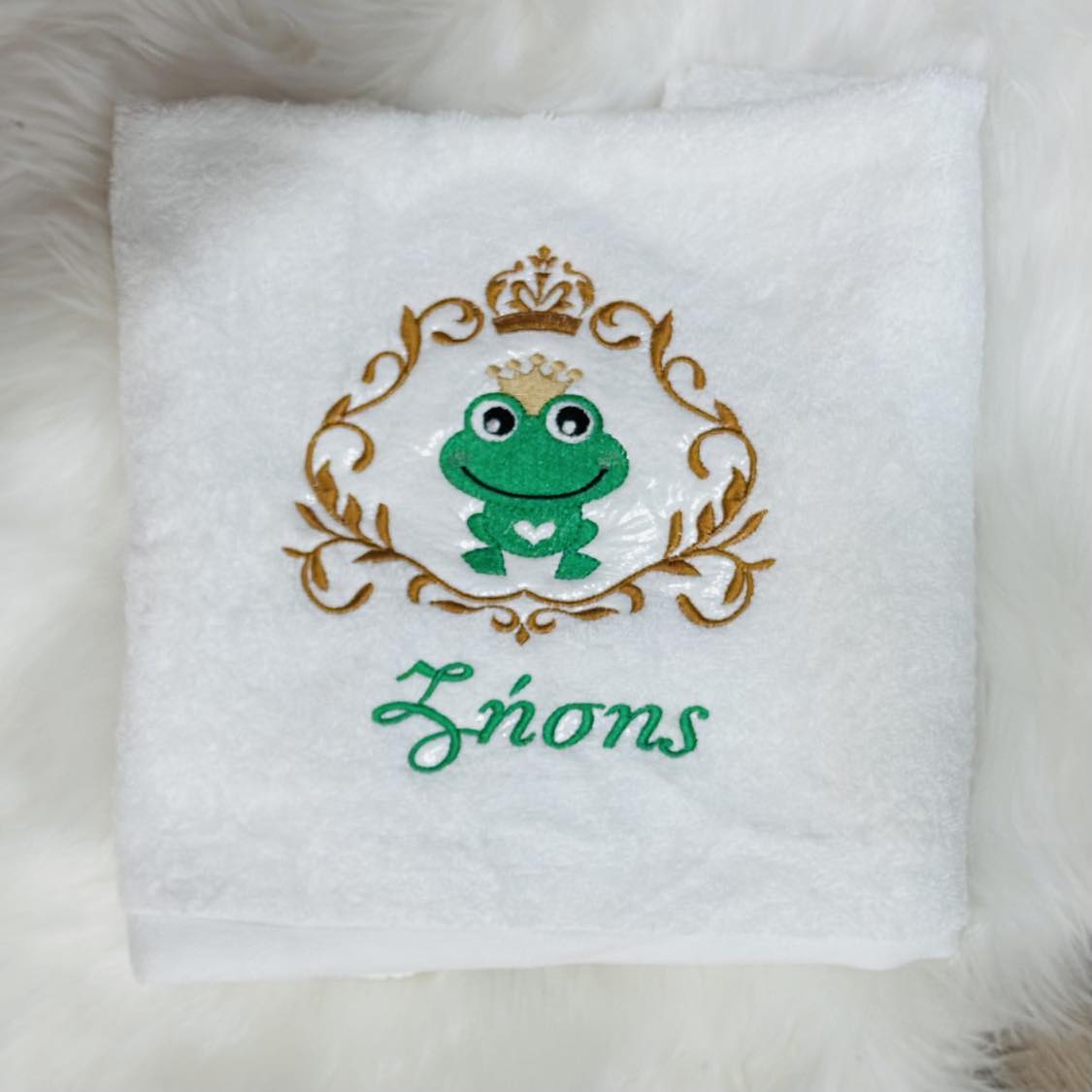 Πετσέτα μπάνιου με κεντημένο σχέδιο βατραχάκι & όνομα
