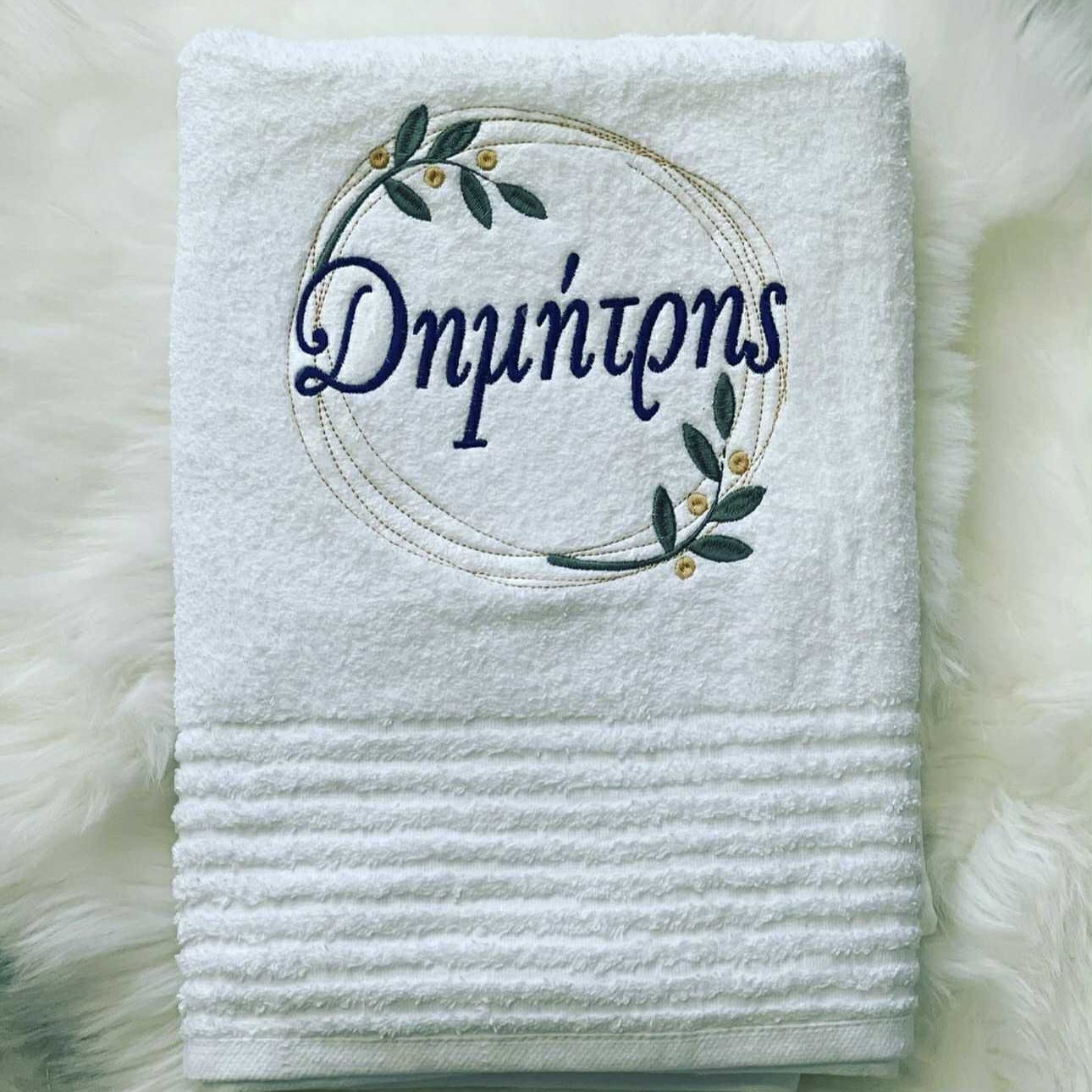 Πετσέτα μπάνιου με κεντημένο σχέδιο wreath & όνομα