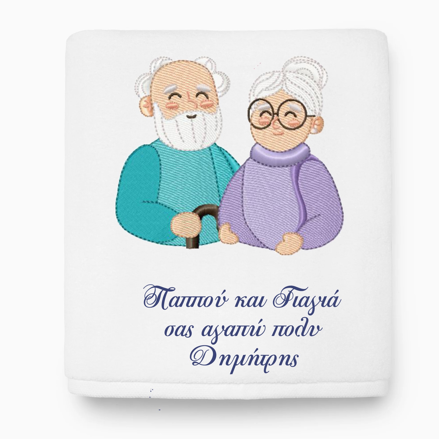 Πετσέτα μπάνιου Παππούς Γιαγιά με κεντημένη ευχή