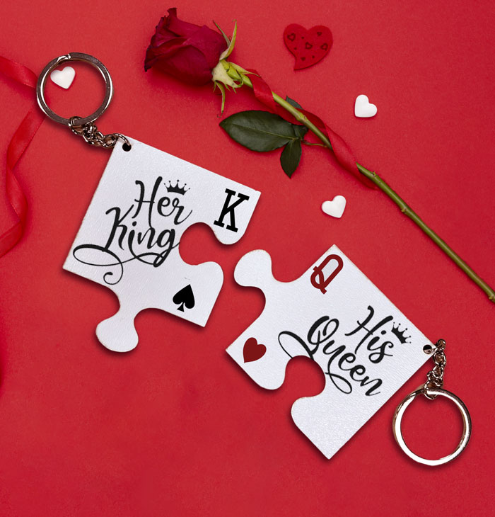 Σετ ξύλινα μπρελόκ για τα κλειδιά σε σχήμα παζλ King – Queen. Ένα έξυπνο δωράκι για ζευγάρια!