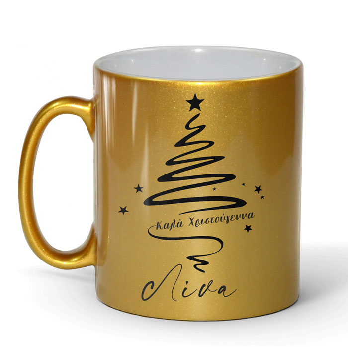 Προσωποποιημένη ολόχρυση κούπα glitter με σχέδιο minimal χριστουγεννιάτικο δέντρο, για να χαρίσετε στα αγαπημένα σας πρόσωπα!